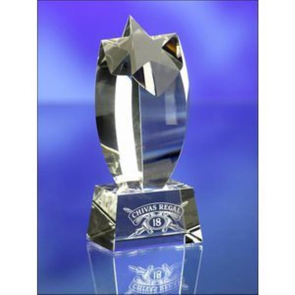 Optical Crystal Glass Award. Size: 203x90x60mm. Engraving set up charges apply.