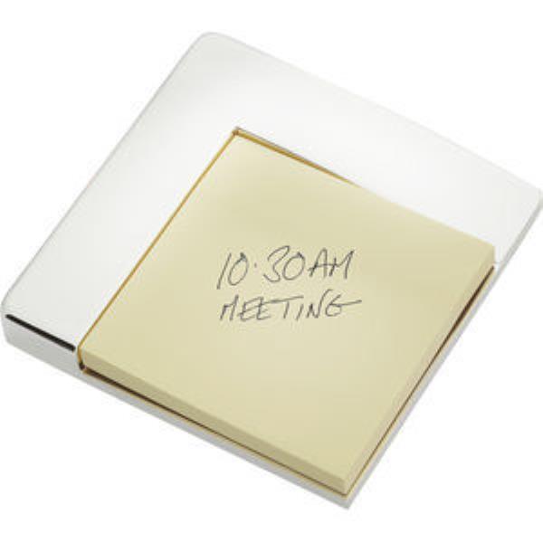 Silver plated metal sticky note holder, beautifully presented and including a laser engraved logo or message.