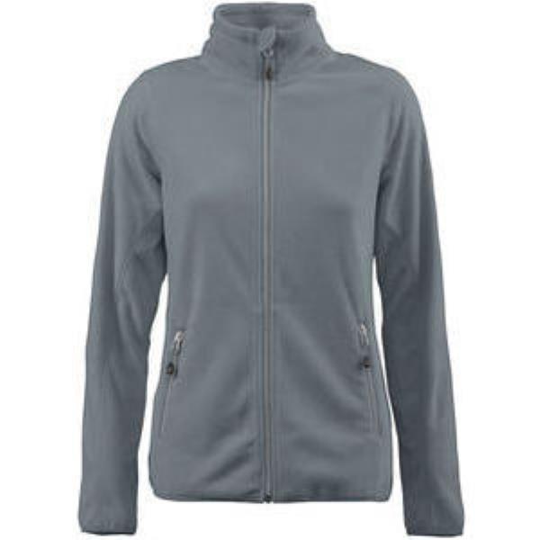 Microfleece jacket for ladies in fabric made for being active in. Front pockets, contrasting zippers, and decorative flatlock seam on sleeve. Elastic tape at hem and bottom sleeve.