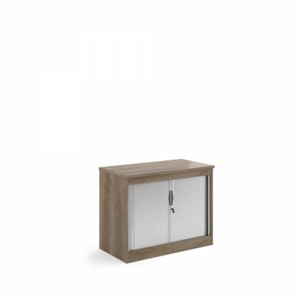 | Sliding lockable tambour doors supplied with two keys and stylish curved handles |