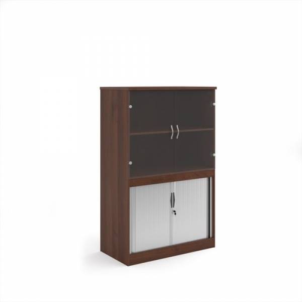 550mm deep premium systems combination units with upper glass doors and lower tambour cupboard doors
