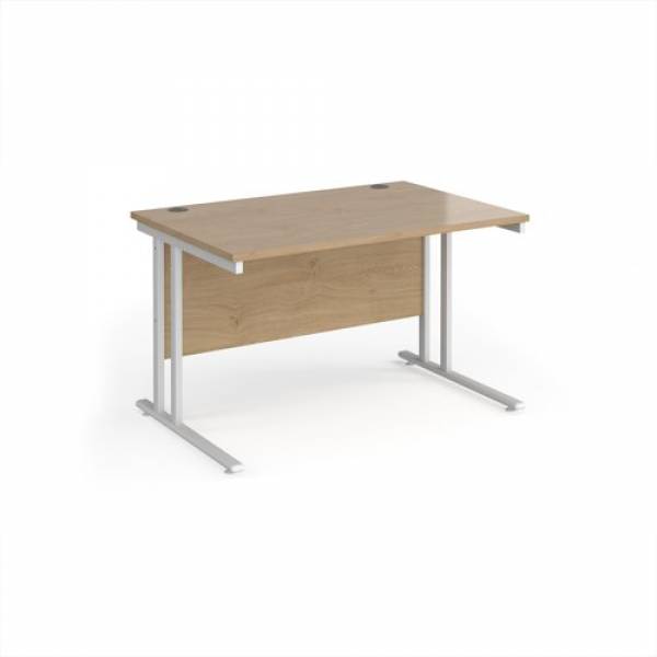 Maestro 25 straight desk 1200mm x 800mm - white cantilever leg frame, Kendal oak top