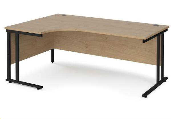 Maestro 25 left hand ergonomic desk 1800mm wide - black cantilever leg frame, Kendal oak top