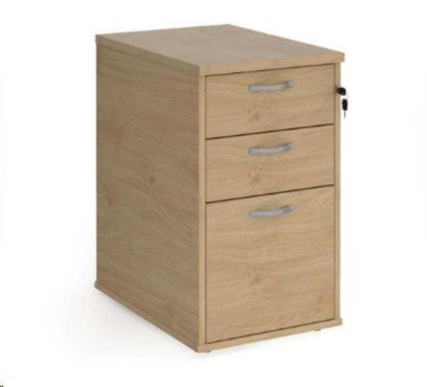 Desk high 3 drawer pedestal with silver handles 600mm deep - Kendal Oak