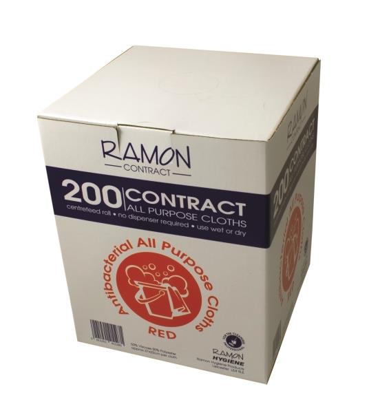 Ramon Contract box of all purpose cloths, specifically designed with the professional contract cleaner in mind. Supplied in colour coded box to help minimise the risk of cross contamination. Ideal for general cleaning tasks, this competitive cloth offers good performance, great value and can also be used wet or dry. Available in the 4 hygiene colours. Absorbent. Wet or Dry Use. Centre feed roll, no dispenser required.