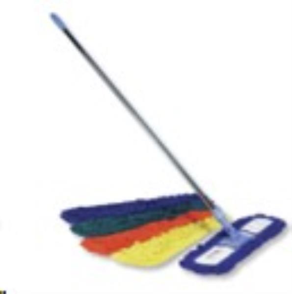 A 40cm dry dust control system with a blue cotton sweeper head, frame & handle
