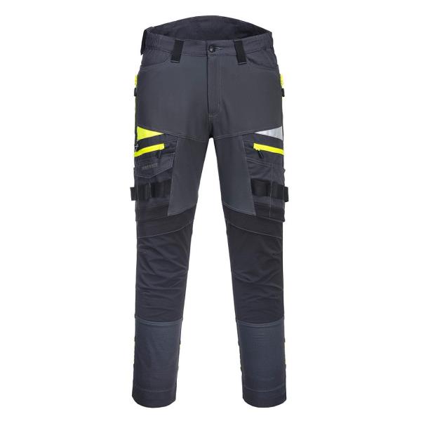 The DX4 Work Trouser is ergonomically designed and uses the targeted placement of dynamic 4X stretch fabrics to give maximum range of movement when working. The trouser features a high-rise back waistband with side elastication, ensuring protection in all working positions. Pre-bent top loading adjustable knee pad pockets, generously sized front pockets and multi-functional zip thigh pockets offers secure storage of phone, pens and tools. Triple stitching throughout for maximum durability.