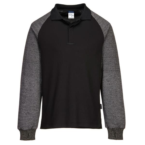 Constructed from premium breathable Cotton Comfort fabric, this long-sleeved polo shirt offers excellent comfort and movement with the advantage of cut resistant sleeves. Features include cut level D fabric on the sleeves providing protection against high cut risks and a loop at the placket ideal for attaching glasses/pens.