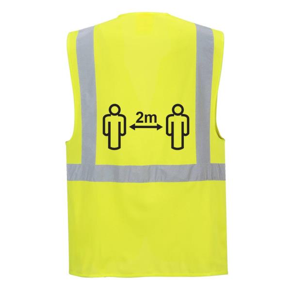 Be safe, be seen with Portwest's Social Distancing Executive Vest. This revolutionary design combines multiple storage pockets with the added benefit of a pre-printed social distancing logo which can withstand repeated washing. A clear ID pocket for security passes and cards complements this unique garment.
