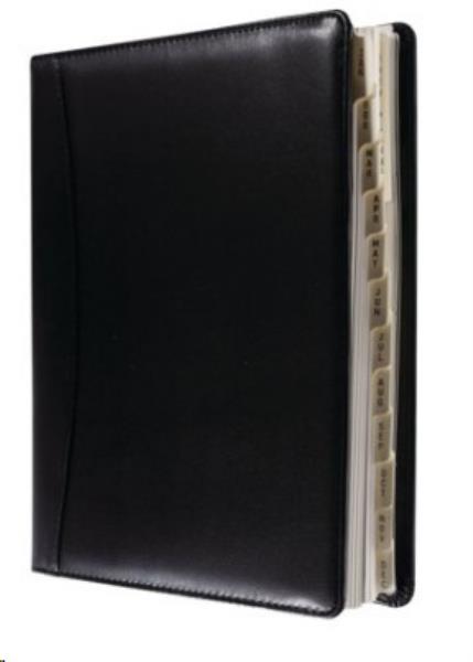 Refillable wirebound diary Day per page with appointments Luxury padded faux leather cover Monthly Mylar tabbing, removable A-Z personal directory and notebook Current and forward year planners and 2 ribbon markers Includes a pen holder and zip-lock section for receipts Colour: Black Dimensions: 246 x 164mm