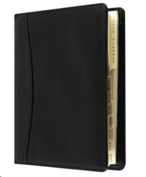 Refillable wirebound diary Day per page with appointments Luxury padded faux leather cover Monthly Mylar tabbing, removable A-Z personal directory and notebook Current and forward year planners and 2 ribbon markers Includes a pen holder and zip-lock section for receipts Colour: Black Dimensions: 190 x 127mm