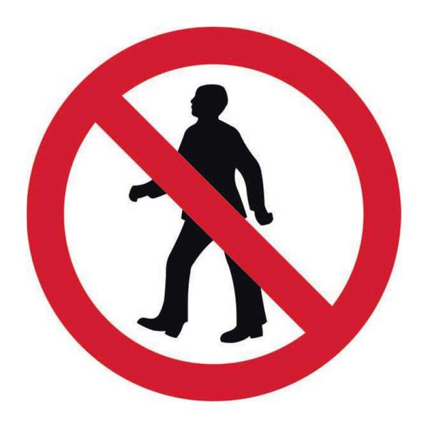 'No Pedestrians Road' Sign, Aluminium Composite with channel (600mm dia.) Style A