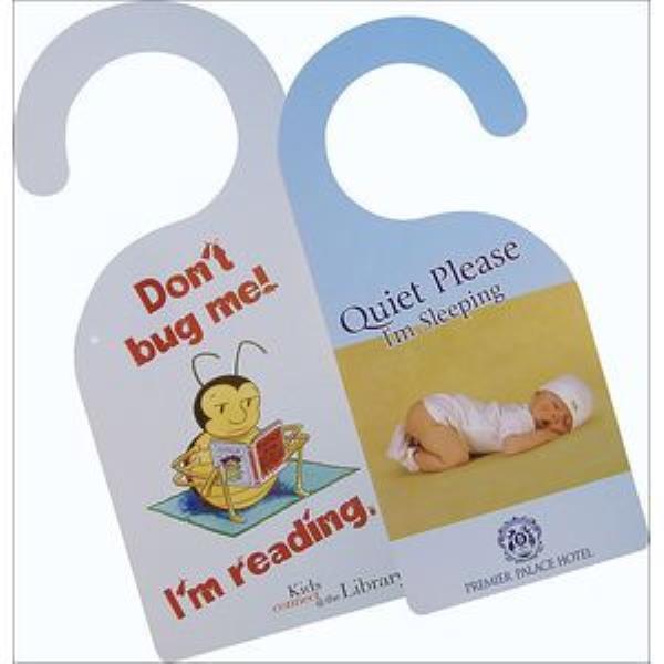 Printed plastic door hanger, 200mm x 86mm x 760 micron thick. Full colour litho print on both sides.