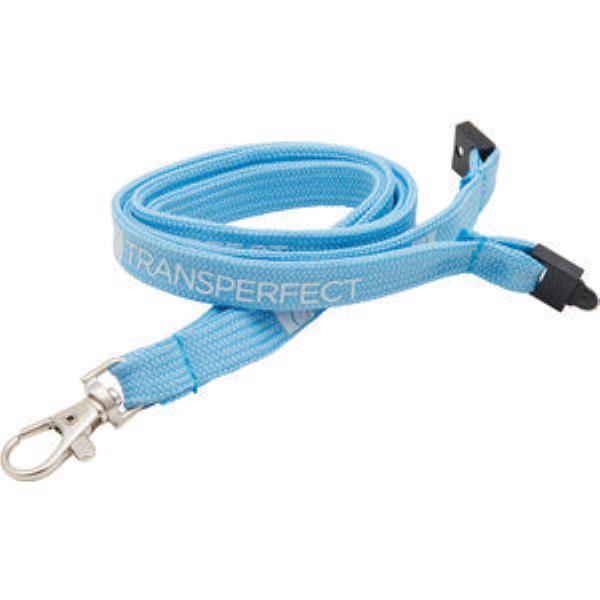 Ideal for exhibitions and events, these 10mm tubular polyester lanyards can be screen printed (up to 4 spot colours) on one or both sides. Personalised, branded lanyards are an excellent promotional product and are available in a wide range of stock colours. Lanyards are commonly used for identity and security purposes in commercial settings such as conferences and training events, as well as in many leisure settings including sporting events, music festivals and concerts. Bespoke pantone matching is also available at an additional cost.