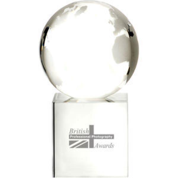 80mm globe on a 60mm crystal cube base supplied in a Satin lined box