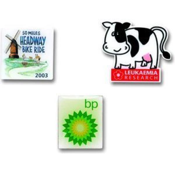 Metal badge. Cut to any shape within 20mm and printed upto full colour. Epoxy coating and butterfly clutch pin fitting.