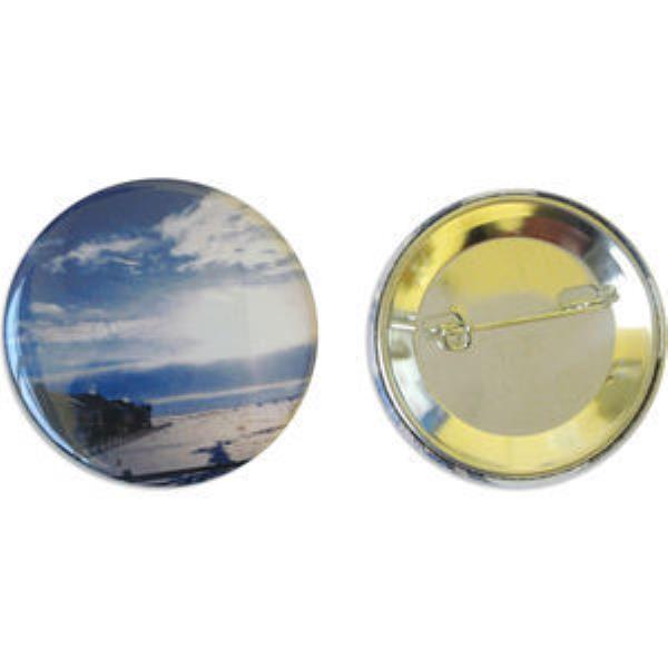 45mm button badges, UK manufactured. Supplied with a safety pin fitting and solid metal back. Spot colour or full colour print available. Child safety warning is added to any pin badge unless specifically requested otherwise