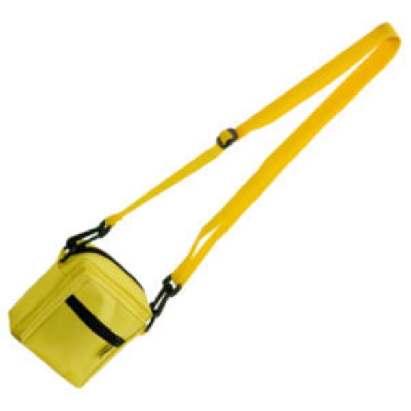 Travel shoulder bag made from 600D polyester with three zipped compartments.