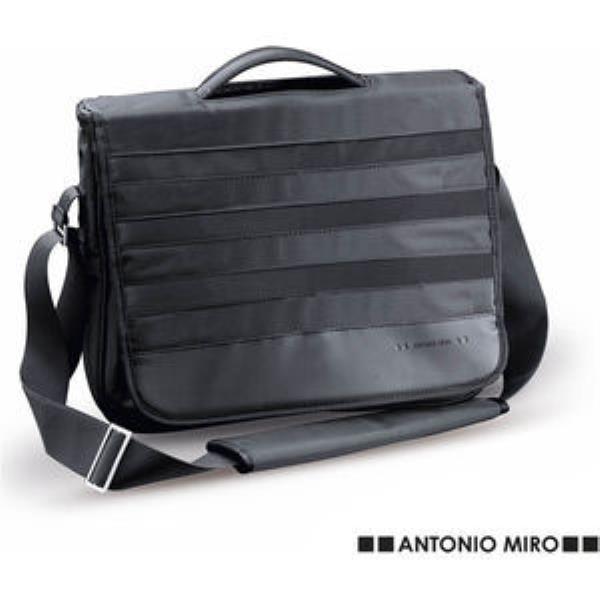 Antonio Miro polyester padded laptop bag with shoulder strap and folding flap.