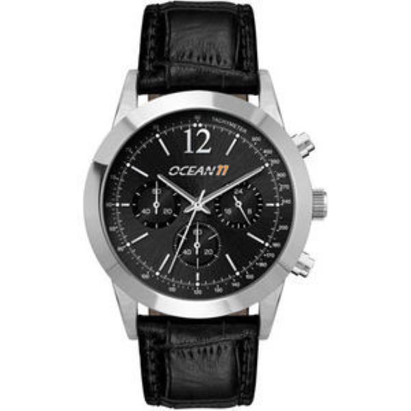 Alloy case, black sunray dial with silver raised ND indexes, padded black crocodile back pattern leather strap