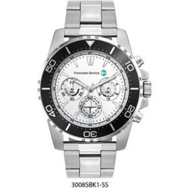 Alloy case, matte silver dial with white luminous printed on silver raised ND indexes, folded S/S band