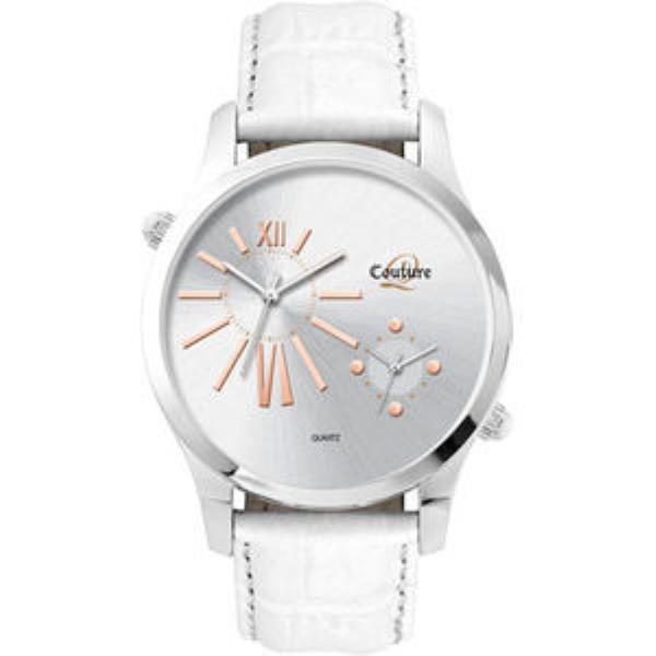 Alloy case, silver sunray dial with rose gold raised ND indexes, padded white crocodile back leather strap