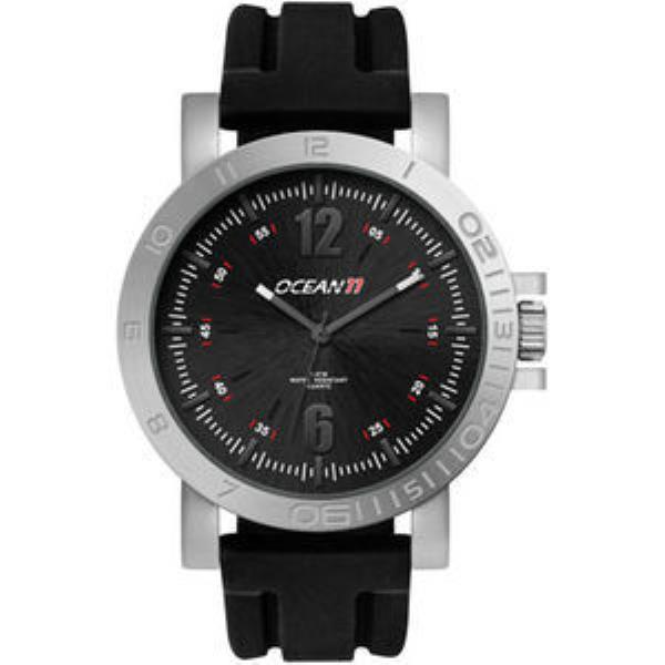 Alloy case, black sunray dial with black raised ND indexes, black silicon rubber strap