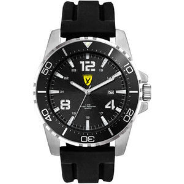 Alloy case, black sunray dial with white luminous printed on silver raised ND indexes, black silicon rubber strap