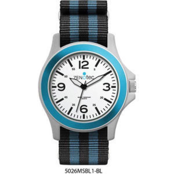Alloy case, matt silver dial with black printed indexes, black/color stripes one piece nato strap