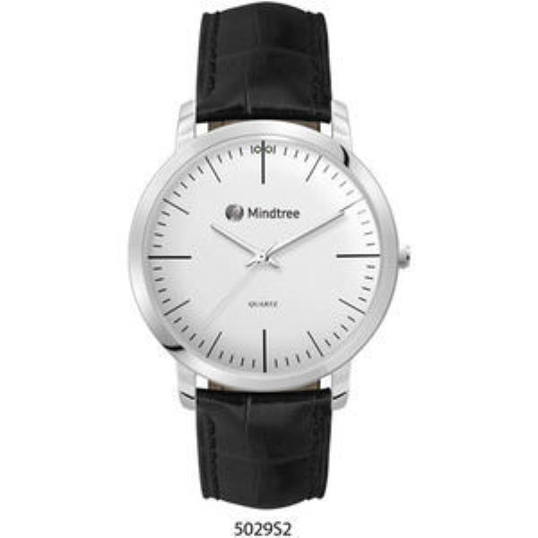 Alloy case, white dial with black printed indexes, padded brown crocodile back pattern leather strap