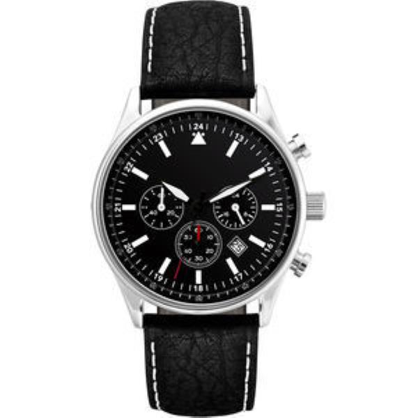 White Luminous Printed Indexes, Matte Black Dial, Padded Black Buffalo Grain Italian Leather Strap w/White Stitching.