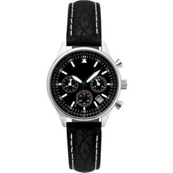 White Luminous Printed Indexes, Matte Black Dial, Padded Black Buffalo Grain Italian Leather Strap w/White Stitching.