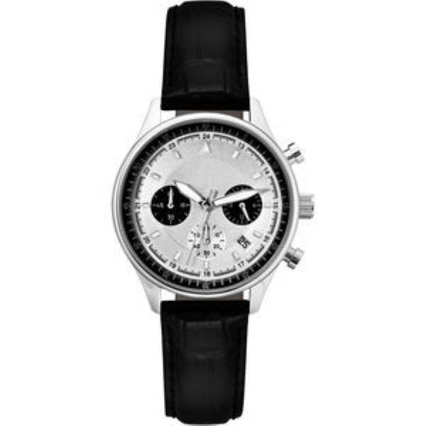 Ladies chronograph watch with leather strap and dome lens