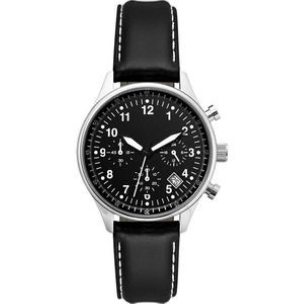 White Luminous Printed Indexes, Matte Black Dial, Padded Black Natural Leather Strap w/White Stitching.