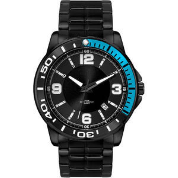 Brushed Black Plated Case & Bezel. White Luminous Printed on Silver Raised ND Indexes, Black Sunray Dial. Solid Finished Wrapped Edge S/S Band.