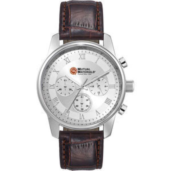 Alloy case, 2-tone silver sunray dial with silver raised ND indexes, padded brown crocodile back pattern leather strap