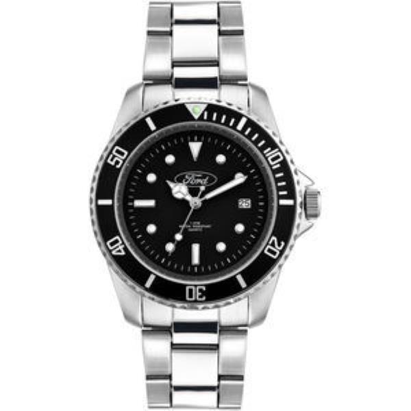 White Luminous Printed on Silver Embossed Indexes, Black Dial, Folded S/S Band, with Date