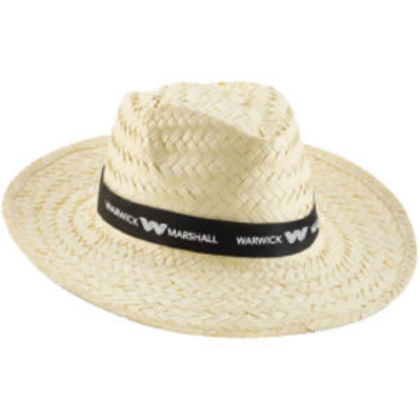 Light straw sun hat with stitched band. The hat bands are available in Black, White, Blue, Red, Orange or Green.
