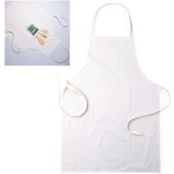 Apron in 100% cotton material 140g/m2. In a white elegant colour, with big size front pocket and adjustment straps in matching colour. Fitting under the knee.