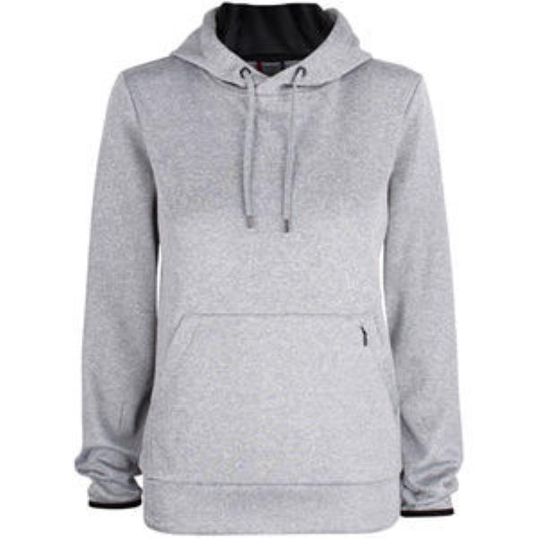 Functional and sporty hooded sweater. Comes with a kangaroo pocket and additional hidden pocket with zipper. Hood has mesh lining and a drawstring. Elastic tipping at bottom sleeves. Cuff in shell fabric at bottom. -Fabric: 100% polyester -Gender: Ladies -Weight: Solid 215 gm2
