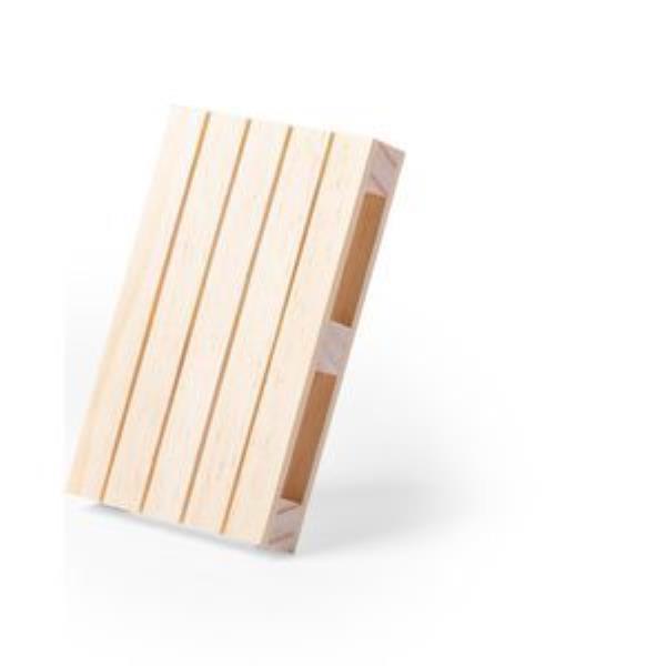 Eye catching, nature line coaster in the shape of a pallet and in natural wood.