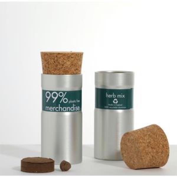 Snip freshly grown herbs over your lunch - grow them on a desk or nearby windowsill. Recycled brushed aluminium desktop garden pot comes complete with innovative seedball that will germinate in around 7-14 days. Complete with cork stopper, growing instructions and organic soil coin with full colour label, laser engraving or rotary screen to maximise your logo or message. Available in silver brushed or matt black finish.