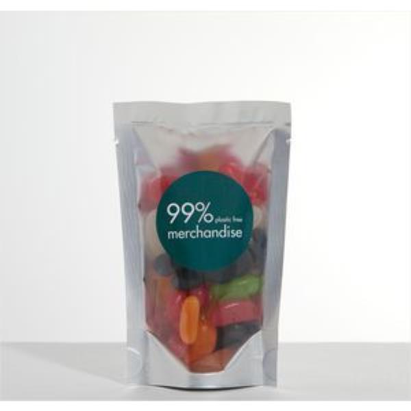 Mouth watering assorted Jelly Beans in branded stand-up aluminium foil pouch. A large 50g fill with full colour digital label to create an irresistable and fun giveaway.