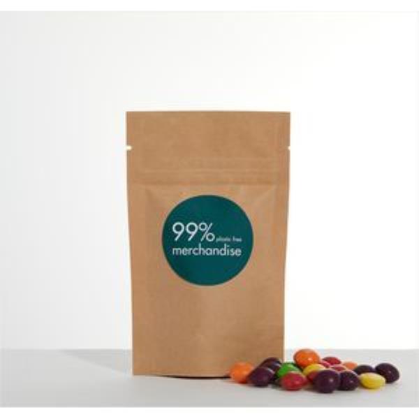 Knock out flavours from an old favourite. A large 50g fill of Skittles in branded biodegradable kraft pouch with full colour digital label or direct pad print to create an ethical and fun giveaway.