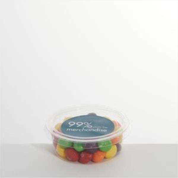 Knock out flavours from an old favourite. A large 50g fill of Skittles in branded compostable sugar cane pot. Full colour digital label to create an ethical and fun giveaway.