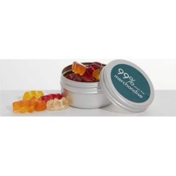 Brightly coloured Haribo Bears in branded British Made aluminium jar. A large 50g fill with full colour digital label, laser engraving or direct print to create an ethical and fun giveaway.