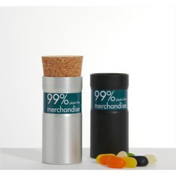 Mouth watering assorted Jelly Beans in branded corked aluminium pot. A large 50g fill with full colour digital label, laser engraving or direct print to create an ethical and fun giveaway.