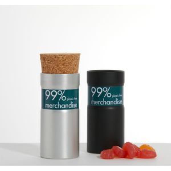 Vegan fruit gums are utterly delicious and totally more-ish. A large 50g in branded corked aluminium pot. Full colour digital label, laser engraving or direct print to create the ultimate ethical giveaway. Avaialble in brushed aluminium silver or matt black to compliment your brand or message.