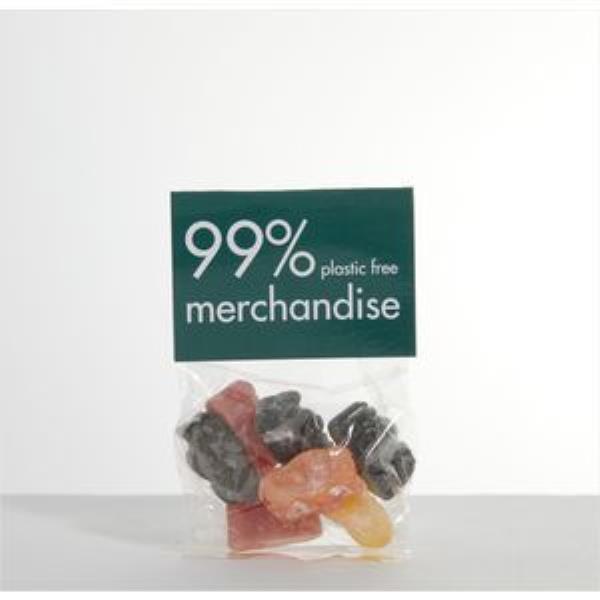 Classic Bassetts Jelly babies in branded compostable/dissolvable sugar cane bag. A large 50g fill with full colour digital label to create an ethical and fun giveaway.