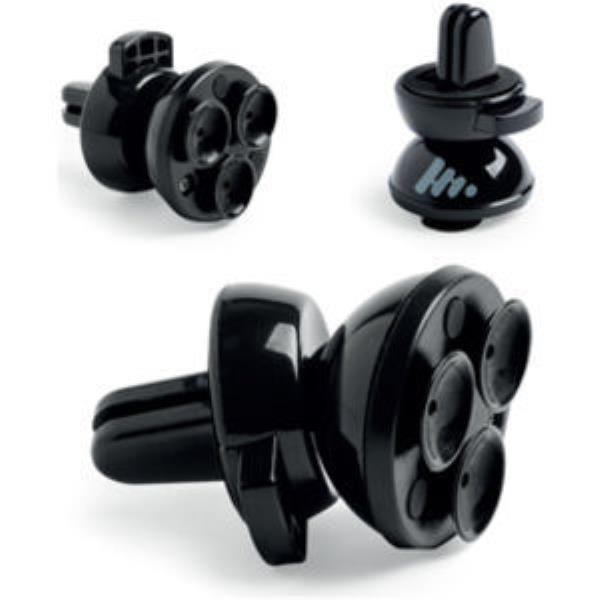 Ventilation grille smartphone holder with suction pads for the device. In an elegant black colour design, with 360 rotation and 45 angle. Presented in an attractive design box.